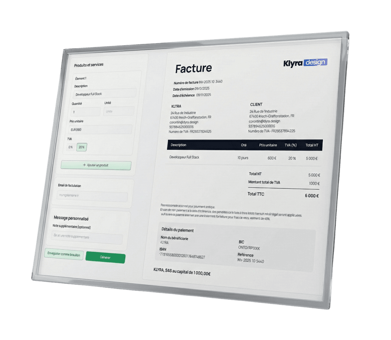 Facture créée, pré-remplie, prêt à envoyer.
